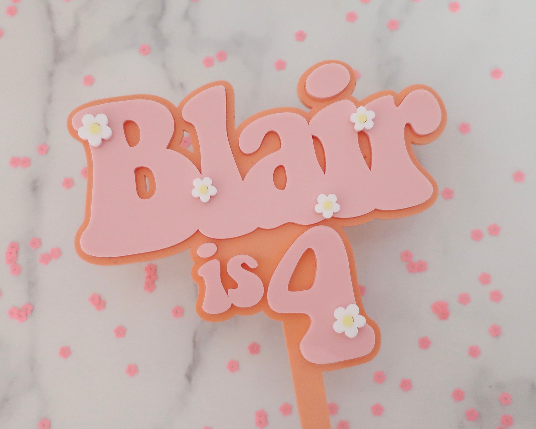 5'' Blakely is 3 Groovy Retro Hippie Flower Power Cake Topper - Made in the UK with Love  from House of Toot Sweet - Just £7.50! Shop now at House of Toot Sweet