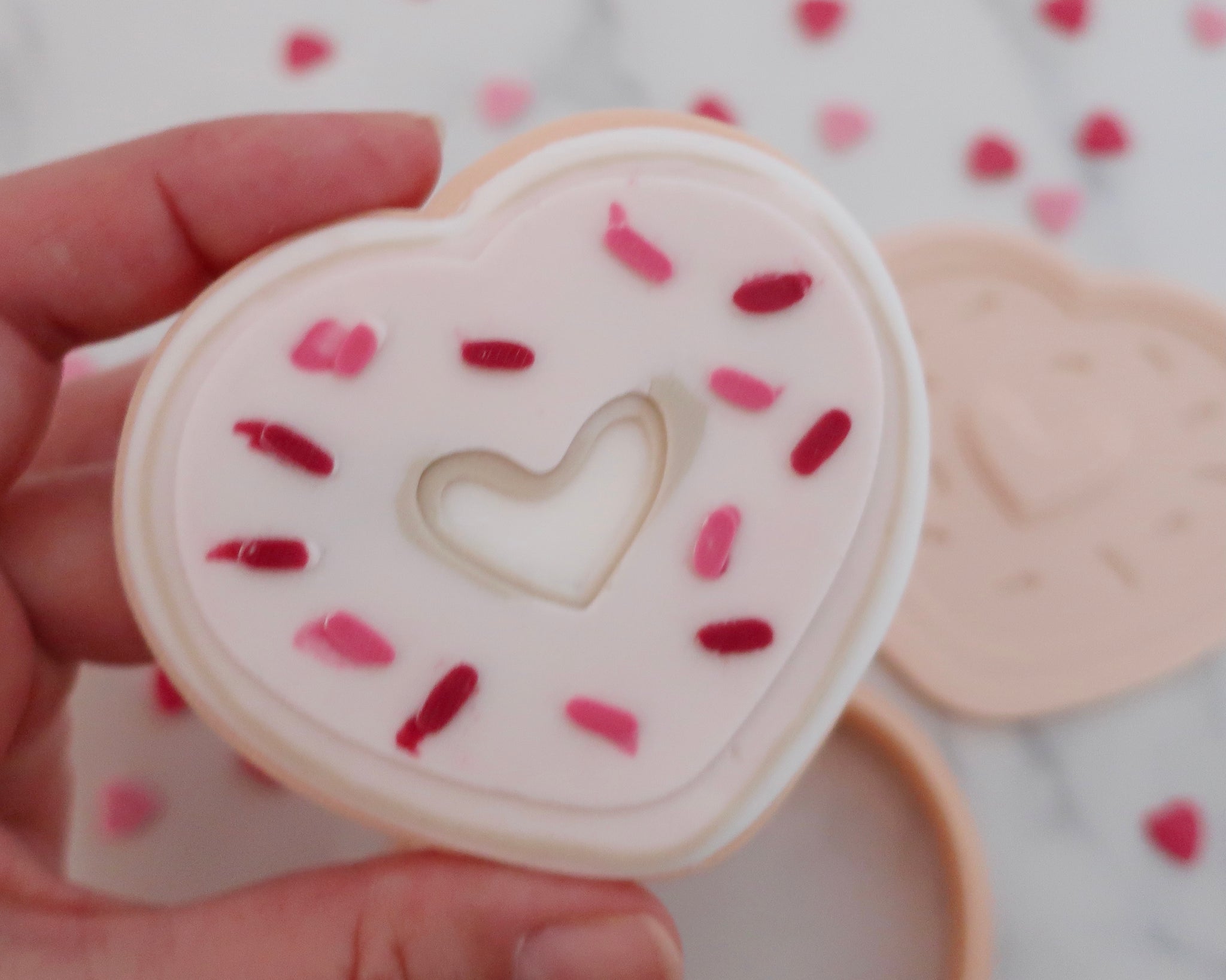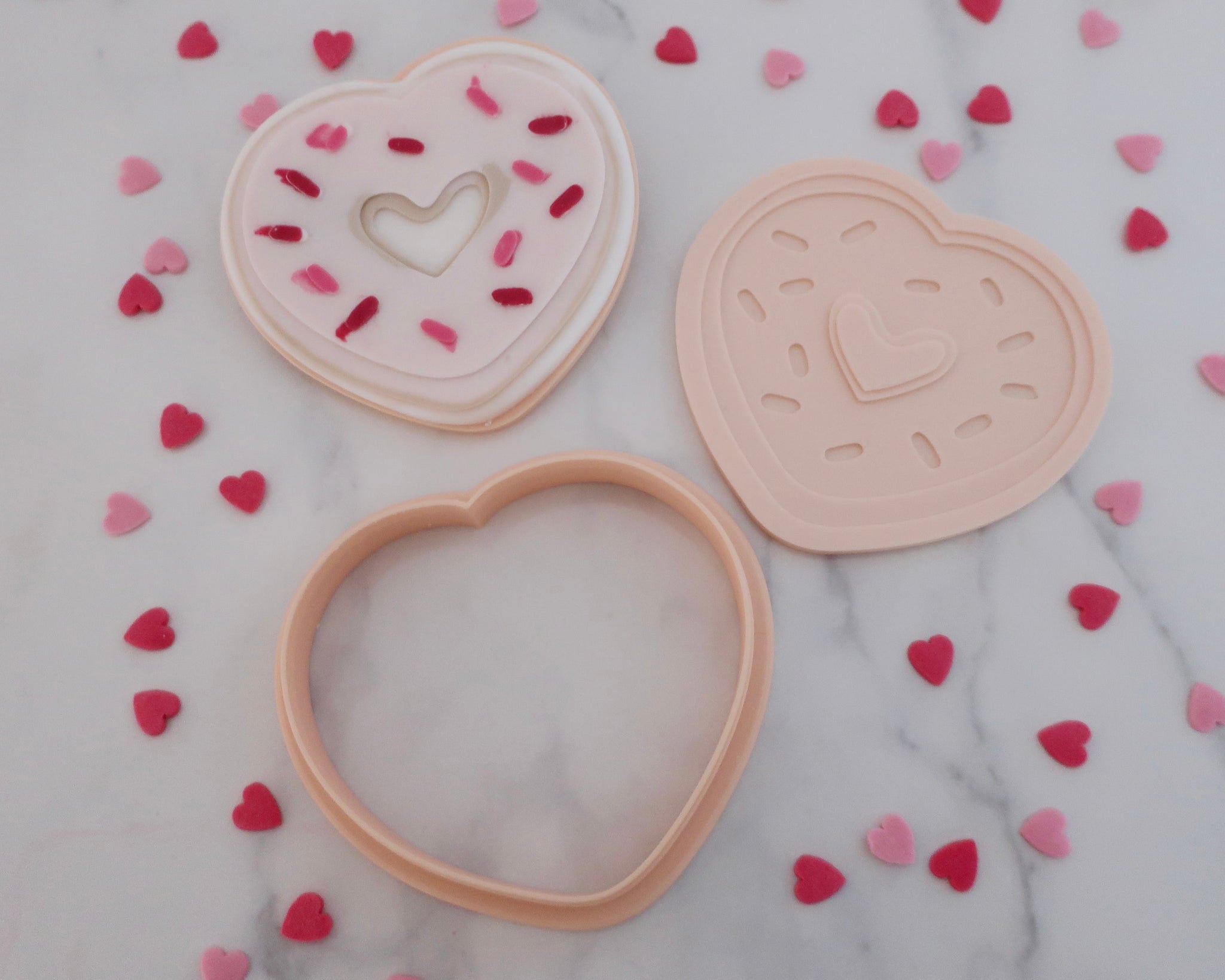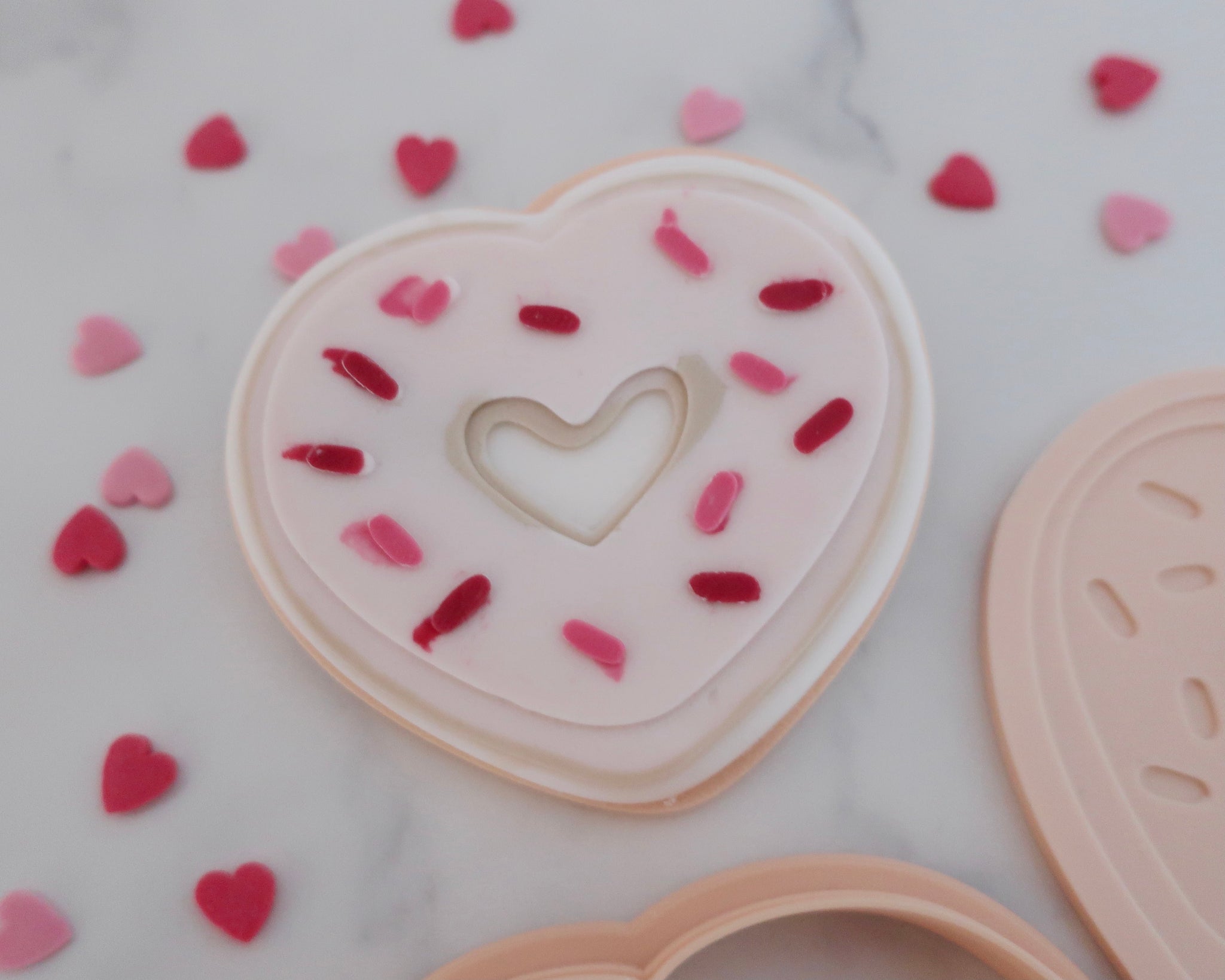 Add our Love Heart Donut to your Valentine's Day cookie treat boxes. A fondant embosser for cookies and cupcakes, saving time and effort, adding uniqueness to your bakes.
