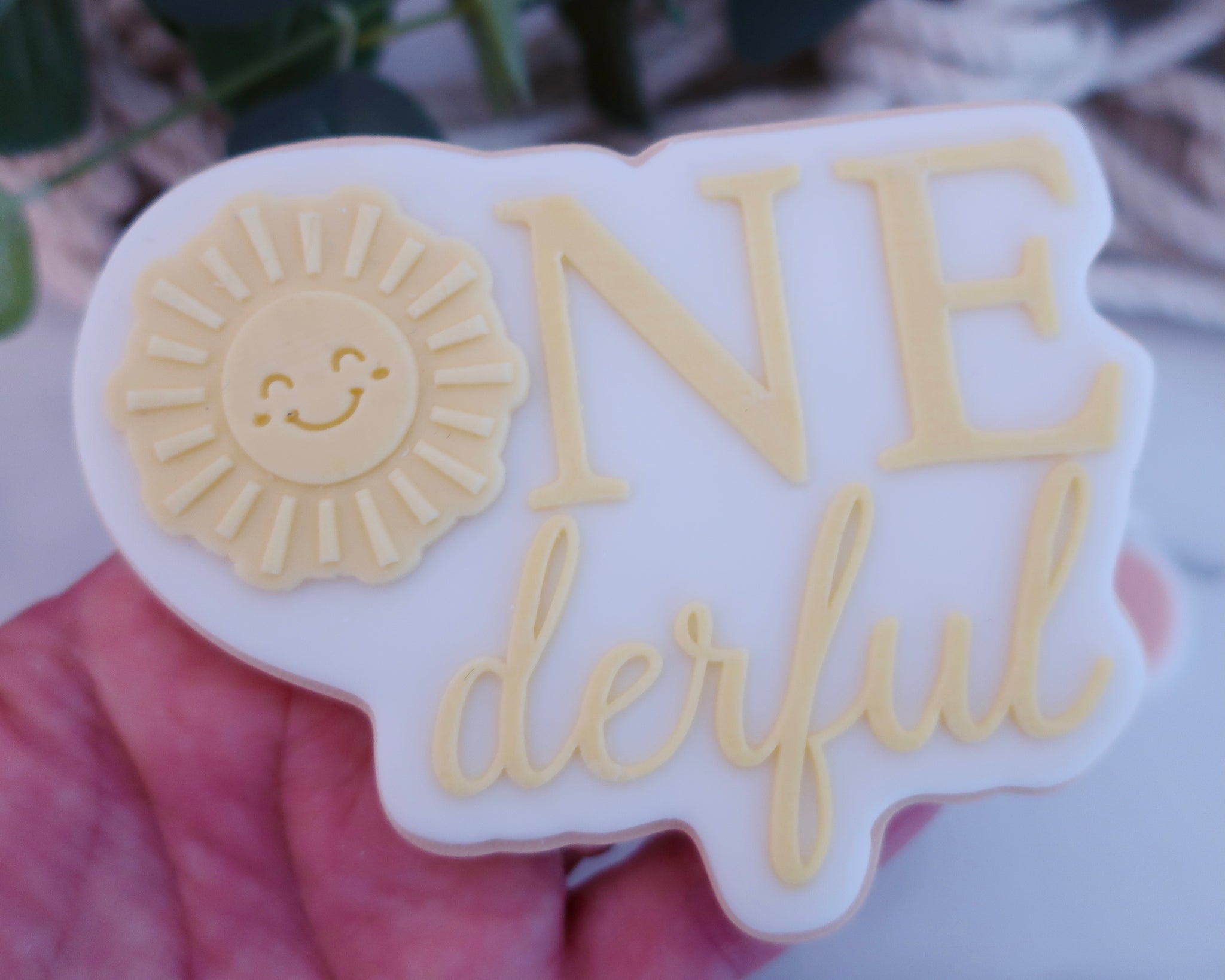 Blank 'One-derful' Embosser and Cutter with interchangeable themes from suns and strawberries to hot air ballons and snowflakes, simply switch out to suit your theme