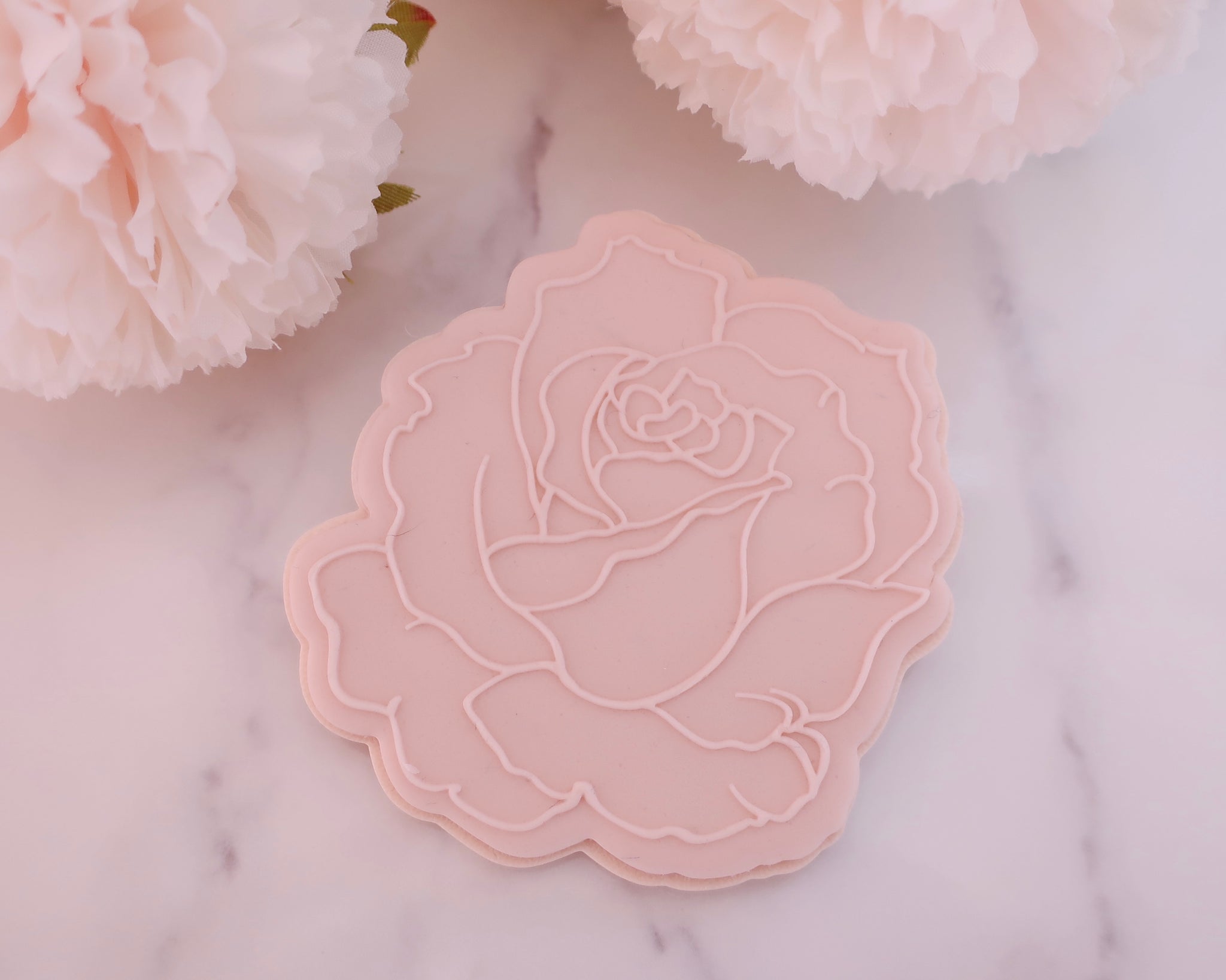 Rose Design dimensions approx H 70mm x W 68mm perfect for standard cookies and cupcake toppers.