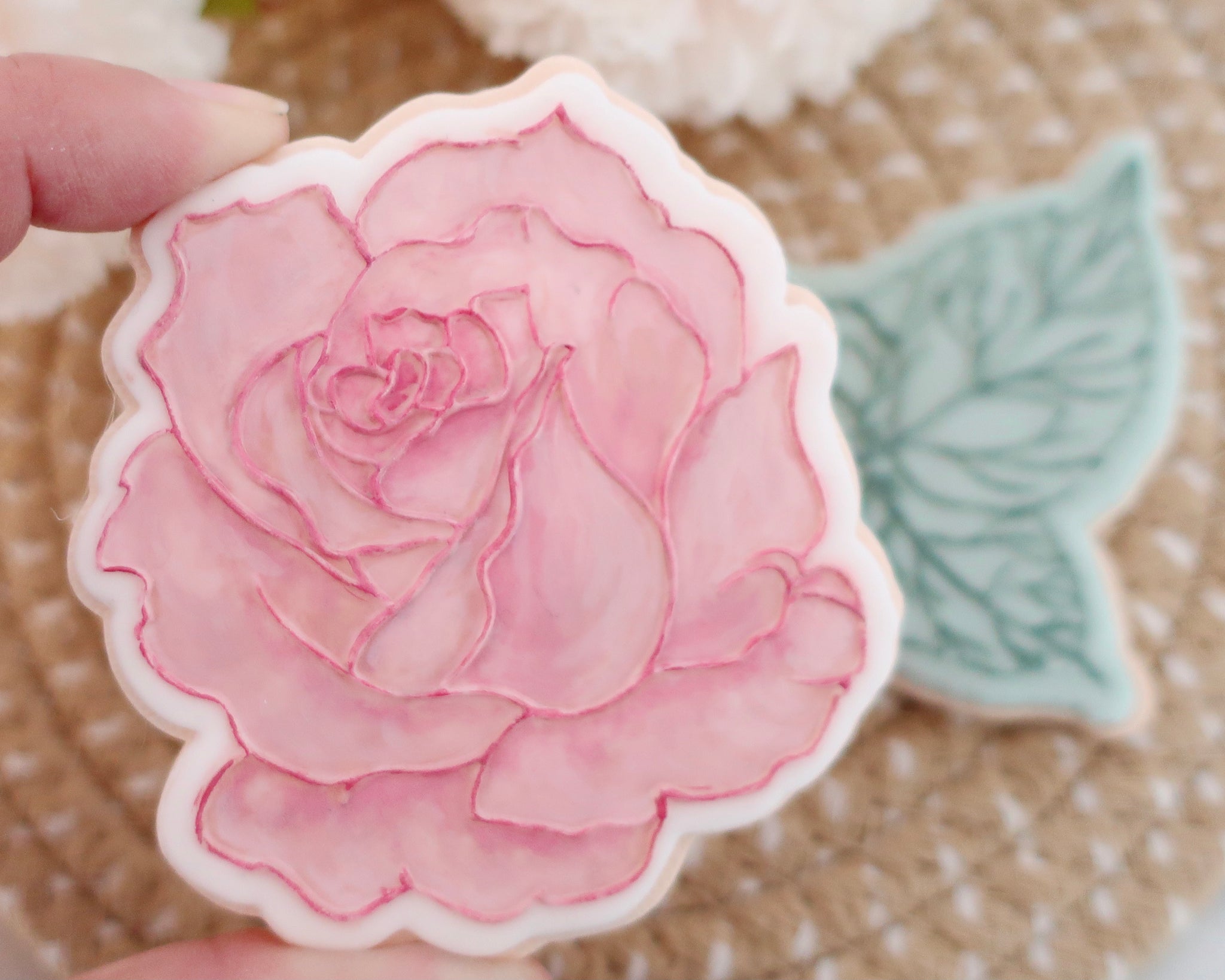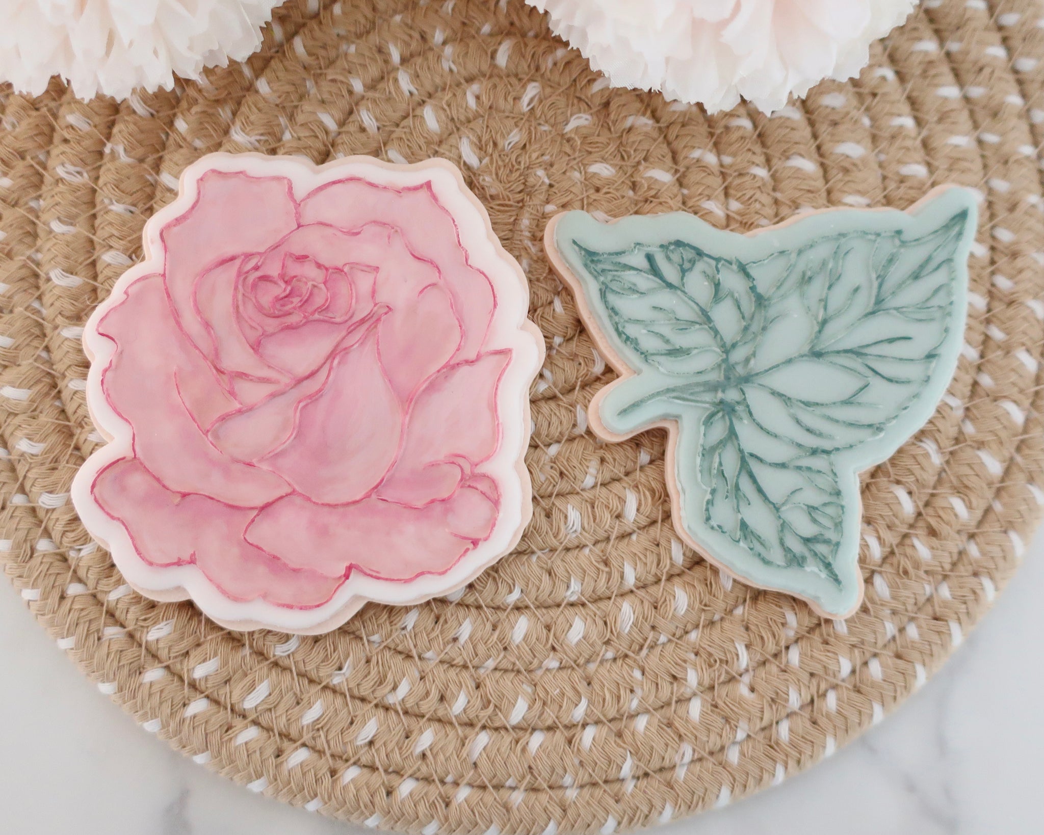 Rose Leaf Design dimensions approx H 70mm x W 64mm perfect for standard cookies and cupcake toppers.