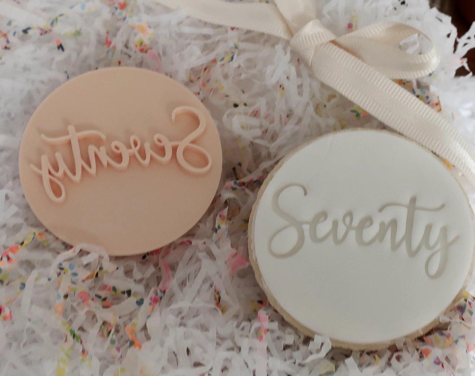 Dimensions - 60mm disc with stamp depth up to 4mm perfect for standard cookies and cupcake toppers.